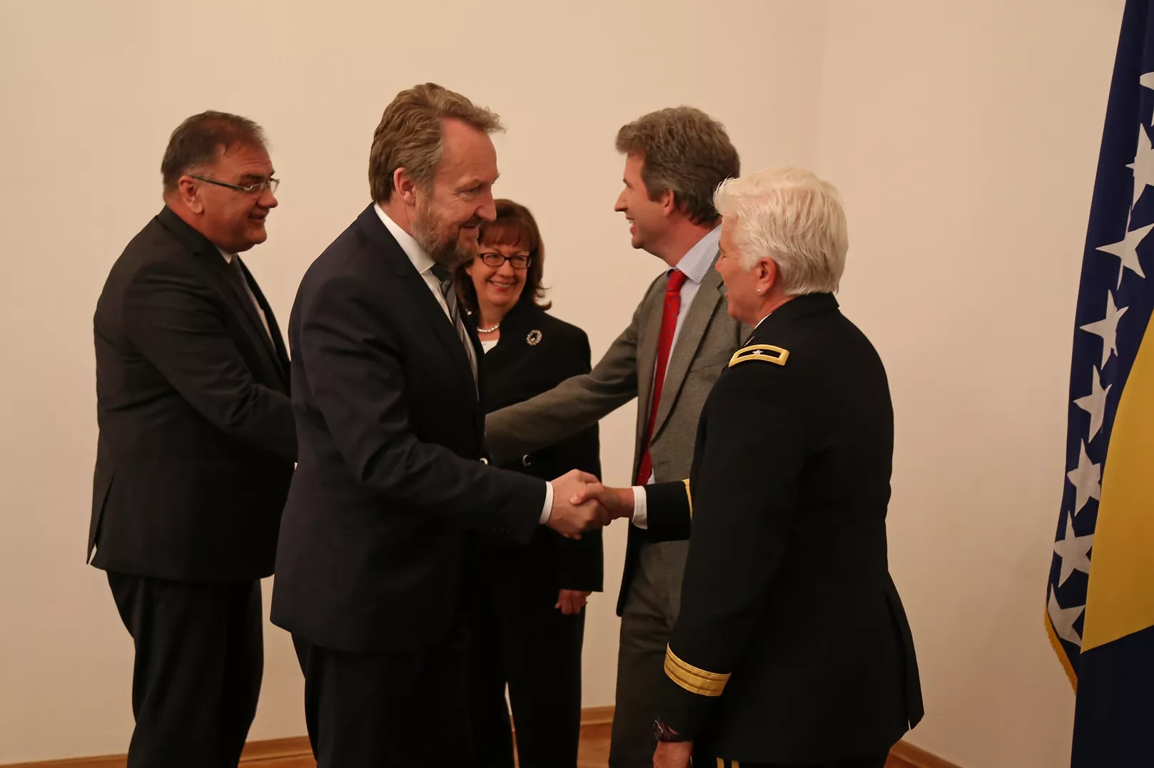 Predsjedavajući Predsjedništva BiH Bakir Izetbegović i član Predsjedništva BiH Mladen Ivanić primili su ambasadoricu SAD-a Maureen Cormack, ambasadora UK Velike Britanije i Sjeverne Irske Edwarda Fergusona i komandanta NATO štaba u BiH, brigadnog generala Giselle Wilz koji su tražili ovaj susret.