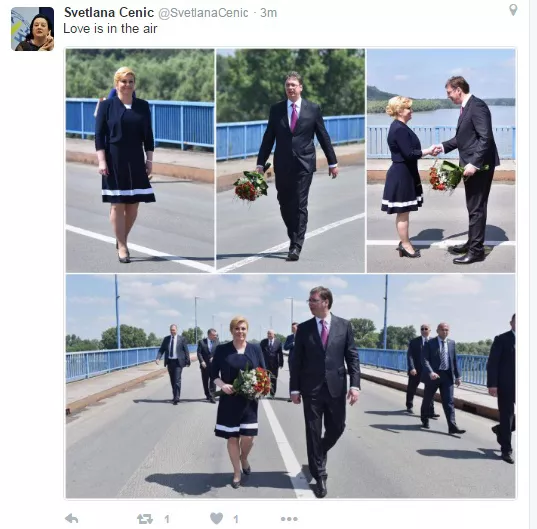 Na društvenim mrežama već su krenuli i komentari o ovom susretu koji mediji iz Srbije nazivaju "historijskim". Analitičarka Svetlana Cenić uz fotografije koje je postavila na Twitteru napisala je: "Love is in the air" - Ljubav je u zraku.
