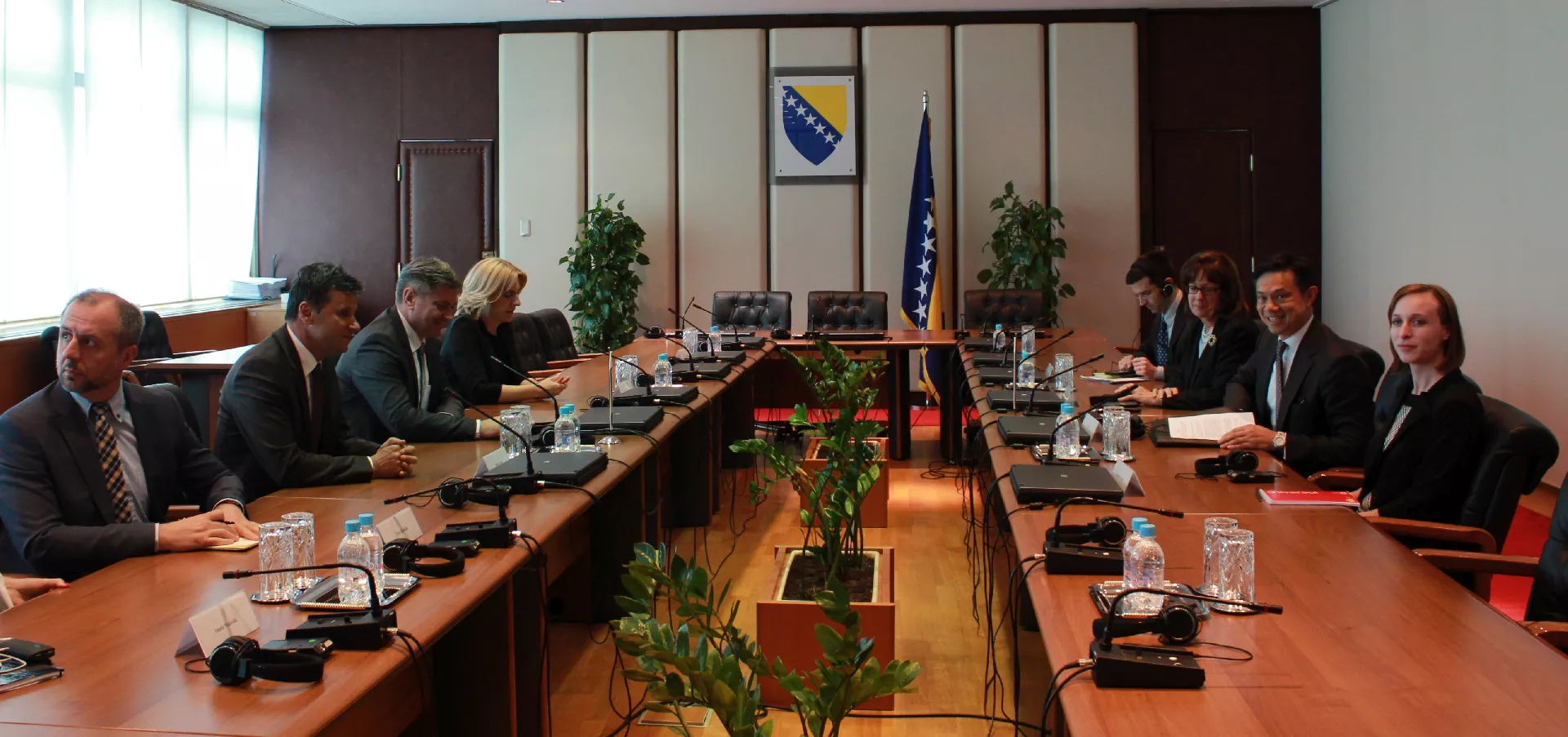 Predsjedavajući Vijeća ministara BiH Denis Zvizdić i predsjednici vlada Republike Srpske Željka Cvijanović i Federacije BiH Fadil Novalić susreli su se danas u Sarajevu sa zamjenikom pomoćnika državnog sekretara SAD-a Hoytom B. Yeem. Sastanku je prisustvovala i američka ambasadorica u BiH Maureen Cormack, prenosi Patria.