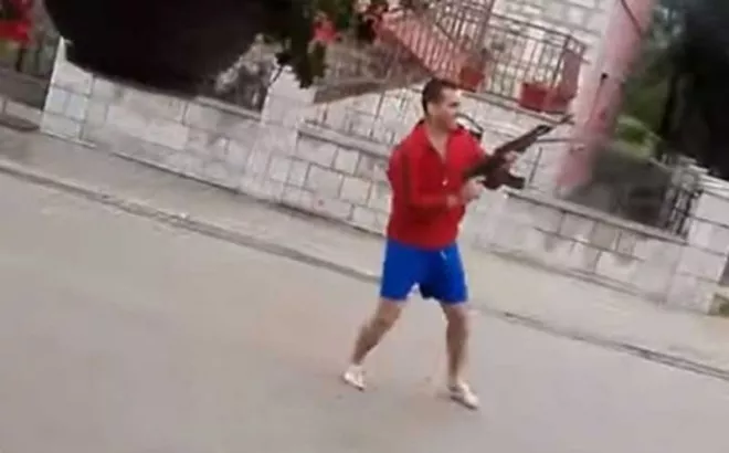 I odjednom Mile iz sehare izvuče kalašnjikov, te zajedno sa drugim muškarcem krenu rafalati u zrak, i to između kuća.