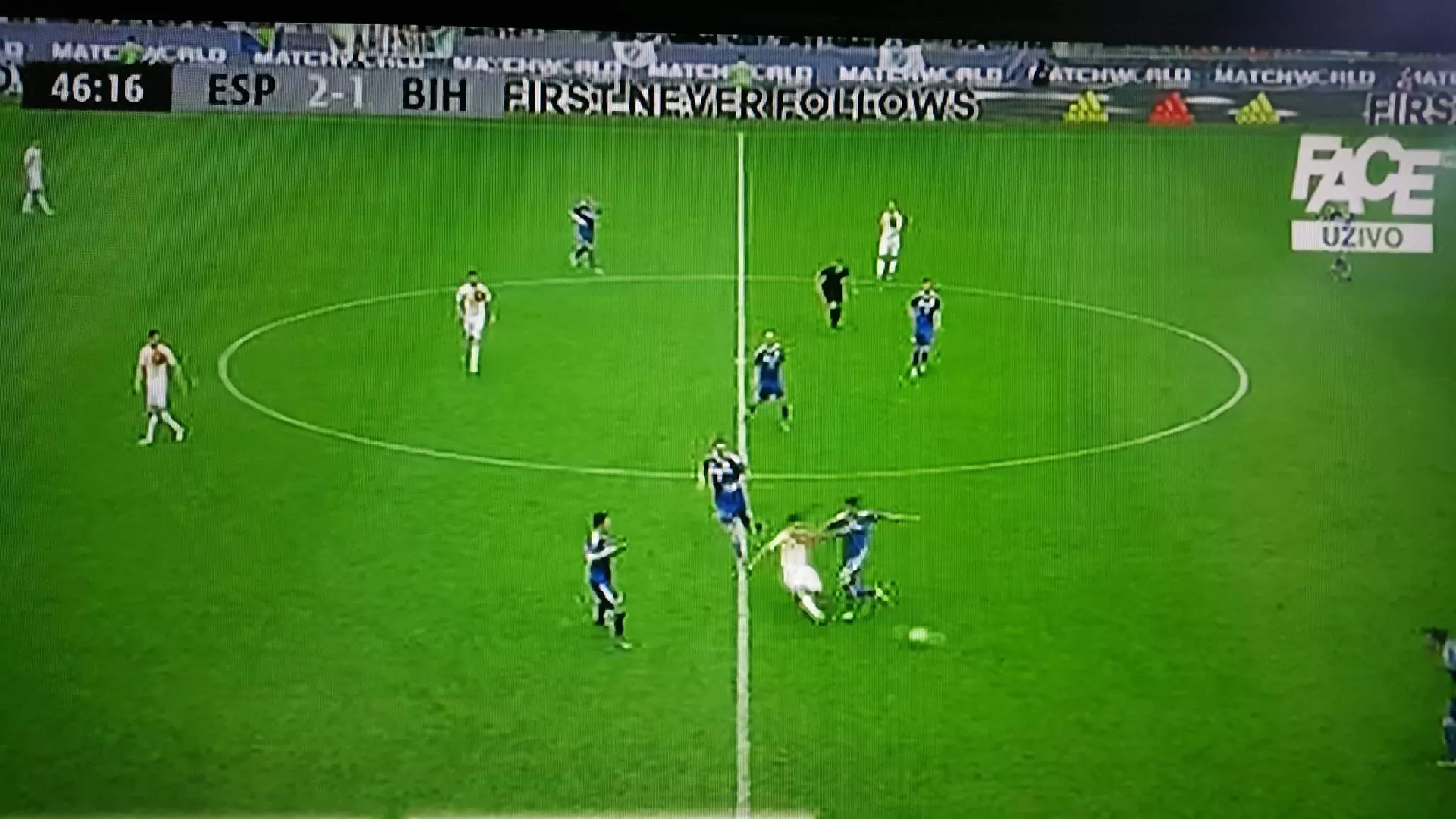 Španci su u 11 minuti igre poveli, nakon čega se igra na terenu rasplamsala. Obje reprezentacije krenule su u napade. Sedam minuta kasnije ponovo gol za Špance. U 21 minuti igre teren je napustio Edin Džeko,a zamijenio ga je Milan Đurić.