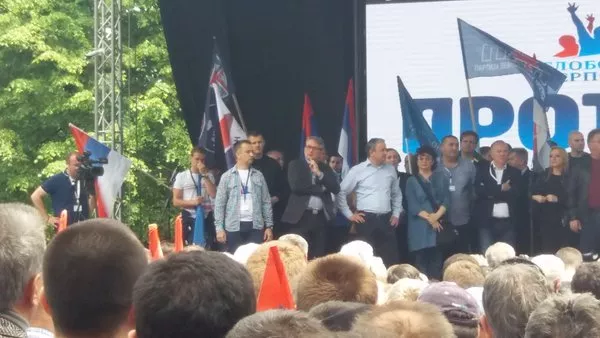 Tokom obraćanja Mladena Bosića, lidera SDS-a, okupljeni su uzvikivali "Mile, lopove", a Bosić je kazao da ne može niko podijeliti srpski narod.