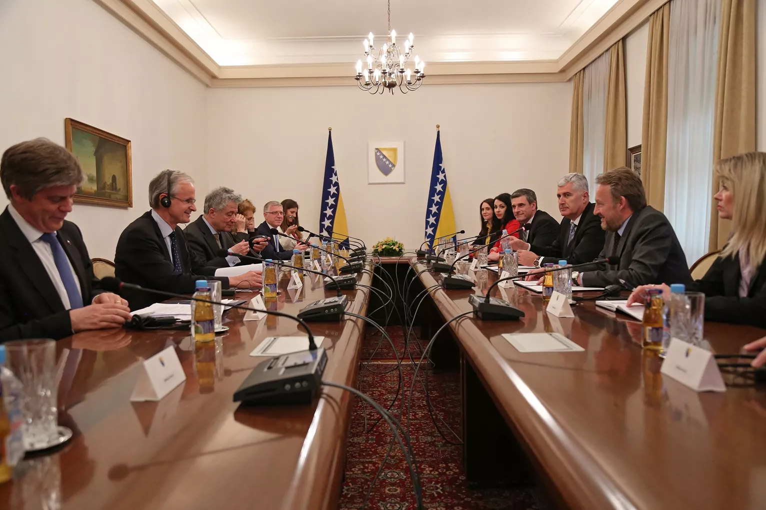 Zvaničnici su pozvali članove Predsjedništva BiH da nastave, u okviru svojih ustavnih nadležnosti, vođenje aktivnosti u procesu evropskih integracija, prije svega na sprovođenju reformi i održavanju političke stabilnosti, kako bi BiH u što skorijem roku dobila željeni kandidatski status.