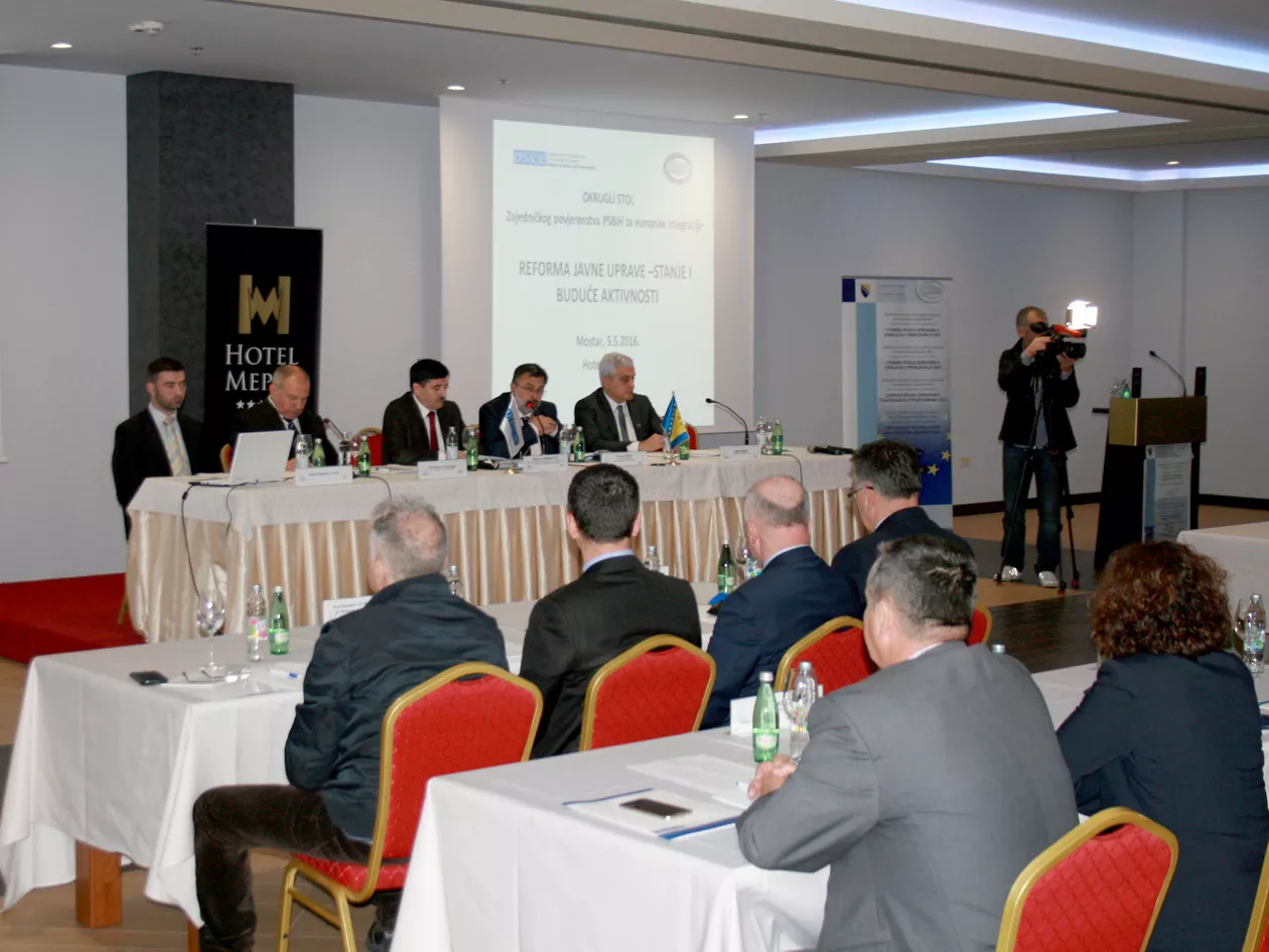 U Mostaru je danas završen Okrugli sto o stanju i budućim aktivnostima u procesu reforme javne uprave u Bosni i Hercegovini, kojeg je, uz podršku Misije OSCE-a u BiH, organizirala Zajednička komisija za evropske integracije Parlamentarne skupštine Bosne i Hercegovine (PSBiH), prenosi novinska agencija Patria.