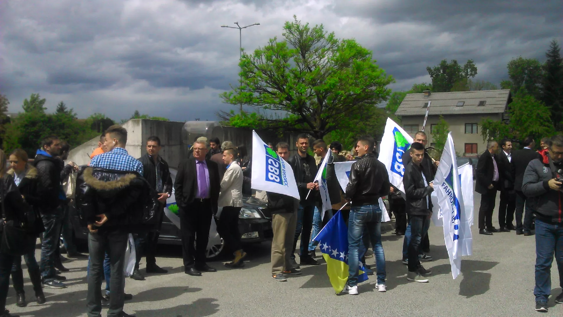 SBB-ovci, njih 50-ak pred Sud su došli sa stranačkim zastavama sat vremena prije početka suđenja, kako su rekli, da pruže podršku predsjedniku.