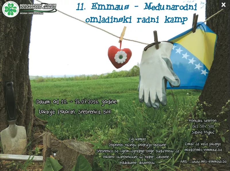- Naš kamp u Srebrenici se organizira već 11 godinu za redom i predstvalja nezaboravno iskustvo za sve učesnike. To je jedinstvena prilika da se mladi međusobno upoznaju kroz radne aktivnosti i neformlana druženja, da zajedno svojim radom i zajedničkim snagama pomognu lokalnom stanovništvu u akcijama u kojima će učestvovati tako i ostalim mladima iz cijeloga svijeta u izgradnji bolje zajedničke budućnosti. Pozivamo mlade iz cijele Bosne i Hercegovine da nam se pridruže na našem kampu u Srebrenici - kazala je Sabiha Mujkić, koordinatorica za mlade i volonterizam MFS-Emmausa.