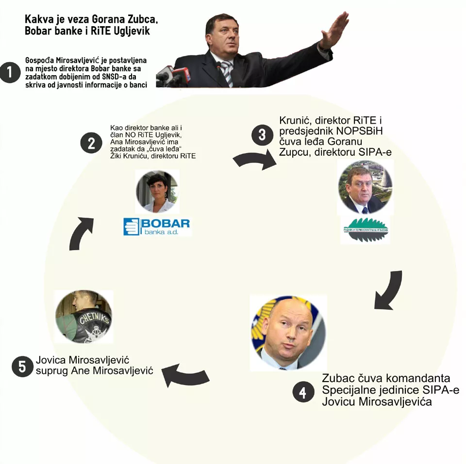 Zubac pak, sa direktorske pozicije na mjestu komandanta Specijalne jedinice SIPA-e čuvao je Jovicu Mirosavljevića, čime se zatvara krug koji je više nego uspješno godinama izvlačio milione maraka za SNSD.