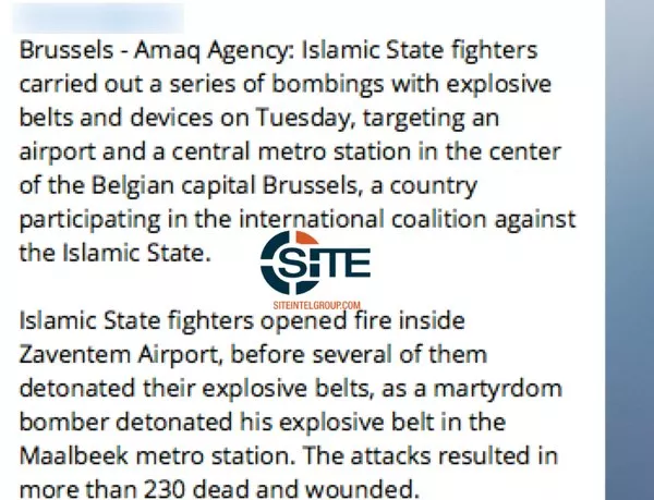 "Borci Islamske države proveli su seriju bombaških napada eksplozivima i ekslozivnim napravama, ciljajući aerodrom i centralnu stanicu metroa u glavnom gradu Belgije, Briselu - zemlji koja učestvuju u borbi protiv Islamske države.