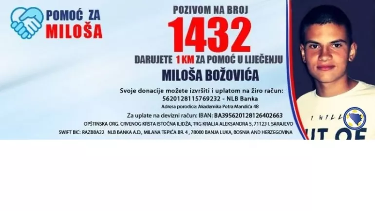 Pozivom na broj 1432 donirate 1 KM za liječenje mladog Miloša. #PomoćZaMiloša