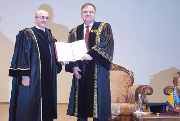 U obraćanju tokom ceremonije uručenja doktorata rektor Slavenskog univerziteta dr. Asif Abas Hadžijev naglasio je da je jedan od motiva za donošenje ove odluke nastojanje da se da podsticaj razvoju saradnje između univerziteta, posebno kada su u pitanju studije slavistike, odnosno izučavanje jezika i kulture naroda koji žive u BiH i susjednim zemljama.