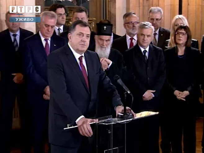 Patrijarh srpski Irinej tokom svog obraćanja poželio je da RS završi započeto i postane pravna država. Skupu je prisustvovao i srbijanski predsjednik Tomislav Nikolić koji se nije obraćao prisutnima.