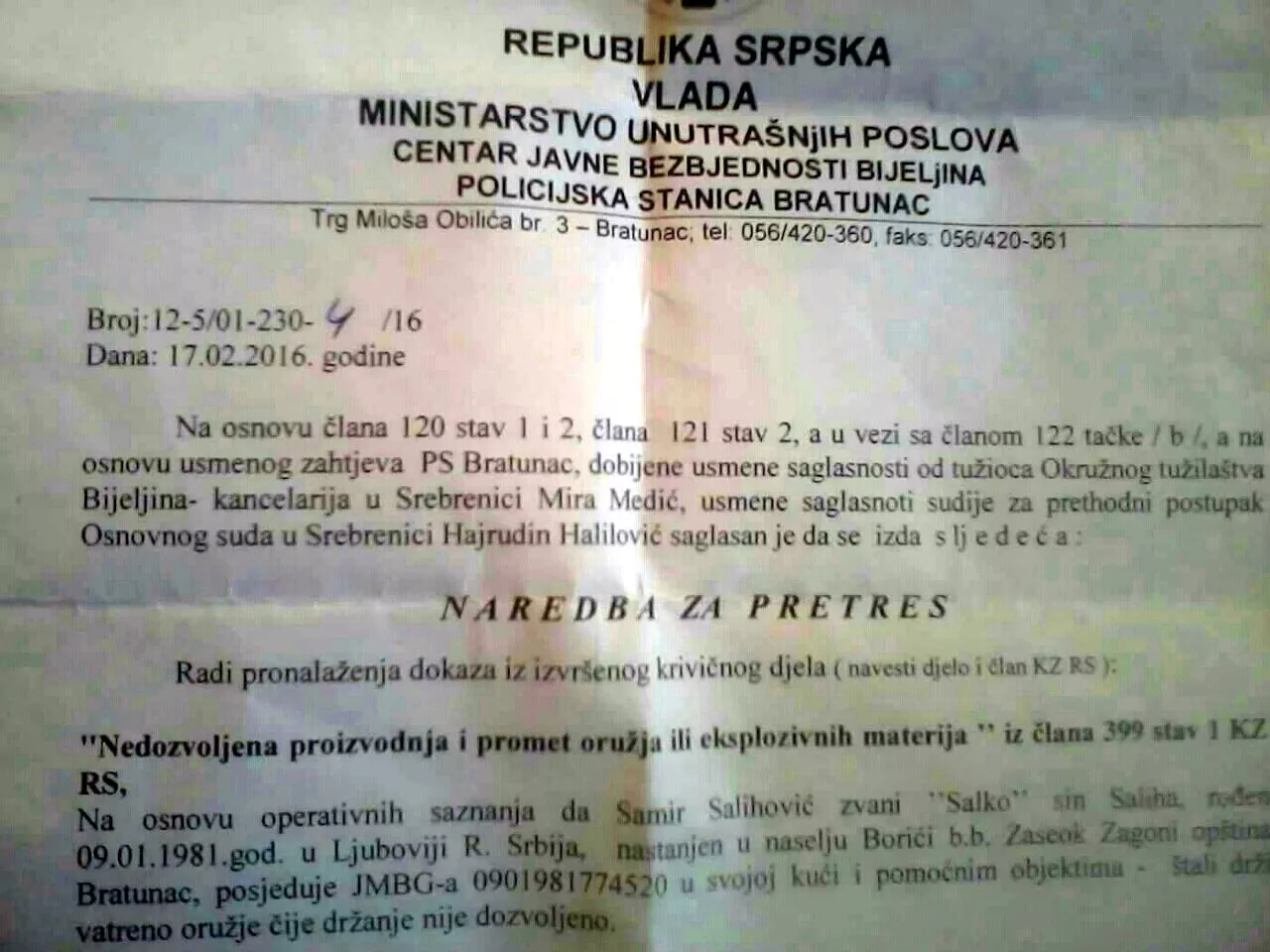 Jučer je u okolici Bratunca pretresena kuća Samira Salihovića (35).