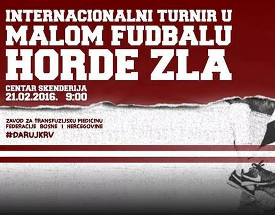 Turnir “Horde Zla 2016” održat će se u Centru Skenderija, u organizaciji Udruženja navijača FK Sarajevo. Turnir se igra u čast naših prijatelja koji više nisu s nama. Prikupljena sredstva bit će usmjerena u humanitarne svrhe.