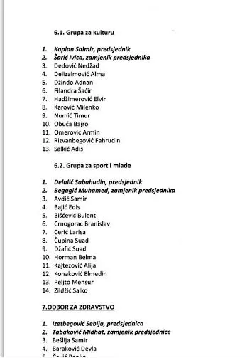 Za predsjednicu Odbora za zdravstvo imenovana je dr. Sebija Izetbegović, na čelu Grupe za sport i mlade Sabahudin Delalić, a Grupe za kulturu Salmir Kaplan.