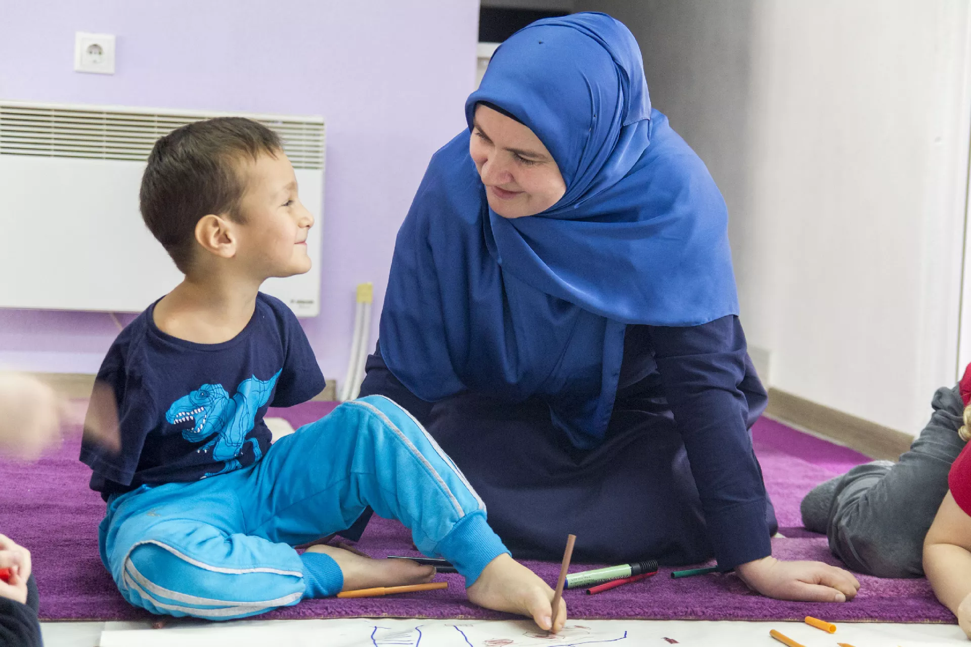 Kao znak podrške, i ostala djeca se pridruže Ismailu pa za svoje aktivnosti koriste samo noge te mu pomažu koliko to djeca mogu i znaju.