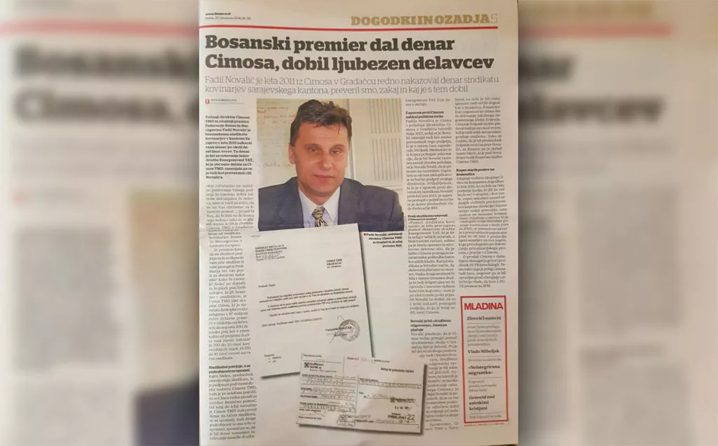 Slovenian magazine Finance writes that Prime Minister Fadil Novalic, while he was Director of Slovenian company Cimos in Gradacac, was giving the company money away to the Syndicate of metal workers from Sarajevo, and was also funding all cultural events in Gradacac.