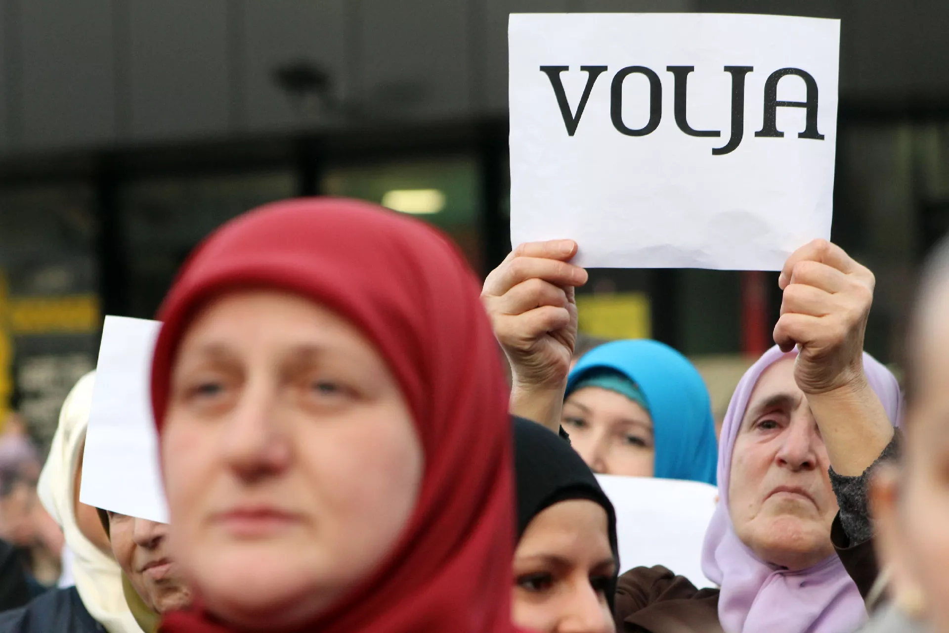 Amira Langić koordinatorica kazala je da je povod okupljanja sramna i diskriminatna odluka VSTVa o zabrani nošenja mahrame odnosno hidžaba u pravosudnim institucijama.