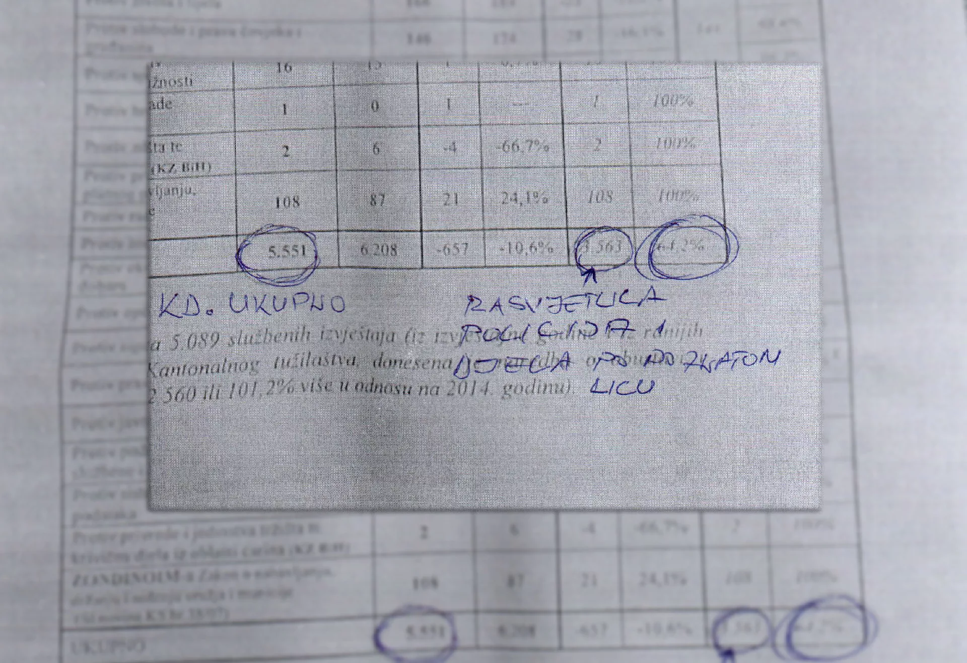 Izvještaj o broju rasvijetljenih krivičnih djela u 2015. godini, koji je Ministarstvo unutrašnjih poslova KS trebalo prezentirati u ponedjeljak, nije tačan! Izvor agencije Patria iz MUP KS tvrdi da MUP želi pokazati kako su u 2015. godini riješili više od 60 posto od ukupnih počinjenih krivičnih djela na području KS, ali taj podataka ne pokazuje realno stanje.