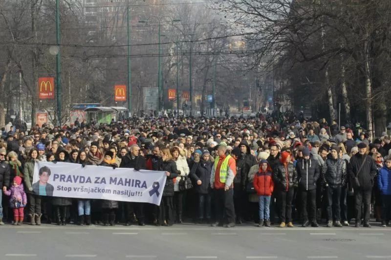 Današnja protestna šetnja organizirana je 40 dana nakon samoubistva 14-godišnjeg Mahira Rakovca. Zbog sumnje da je Mahir bio žrtva vršnjačkog nasilja, Kantonalno tužilaštvo Sarajevo u saradnji sa MUP-om KS vodi i zvaničnu istragu.