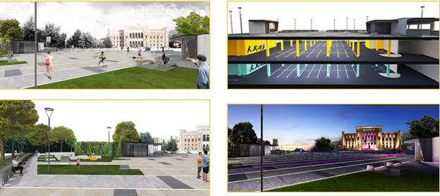 Nadzemni dio je zamišljen kao višenamjenski trg na kojem će se održavati javne manifestacije. Na trgu će se izgraditi park sa zelenim površinama i dječije igralište. Trg će biti popločan i na njemu će biti postavljena bina za održavanje kulturno-zabavnih manifestacija, tokom čitave godine. Na trgu, koji će površinom biti najveći u Kantonu Sarajevo, bit će postavljeni i vodoskoci. Izvedbeni projekat izgradnje podzemne garaže u ulici Avdage Šahinagića uradila je firma „Coning“d.o.o. iz Sarajeva.