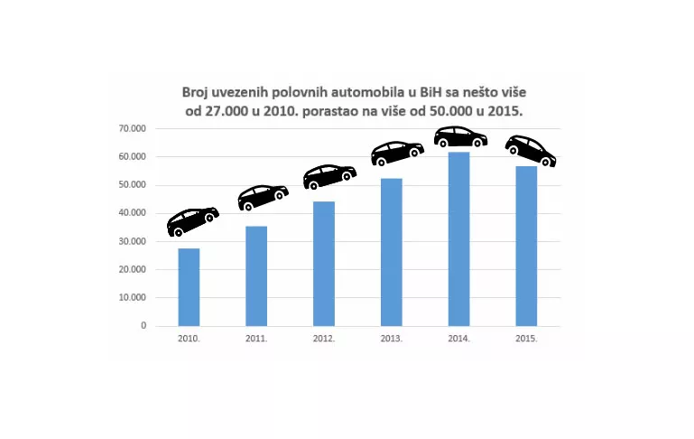 Bosna i Hercegovina postaje groblje starih automobila. Broj rabljenih vozila koja su 2015. godine uvezena u zemlju premašuje 56.000, što je dvostruko više nego 2010. godine, piše bh. novinska agencija Patria.