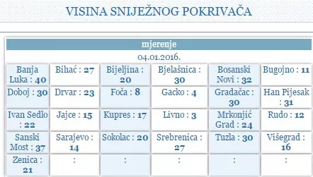 I u Tuzli i Gradačcu sniježni pokrivač iznosi 30 centimetara, dok je u Bijeljini 20 cm.
