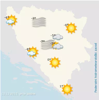 U Sarajevu se očekuje umjerena naoblaka, u kotlinskim dijelovima grada moguća je ujutro i magla. Jutarnja temperatura zraka oko –4°C, a najviša dnevna do 3°C.