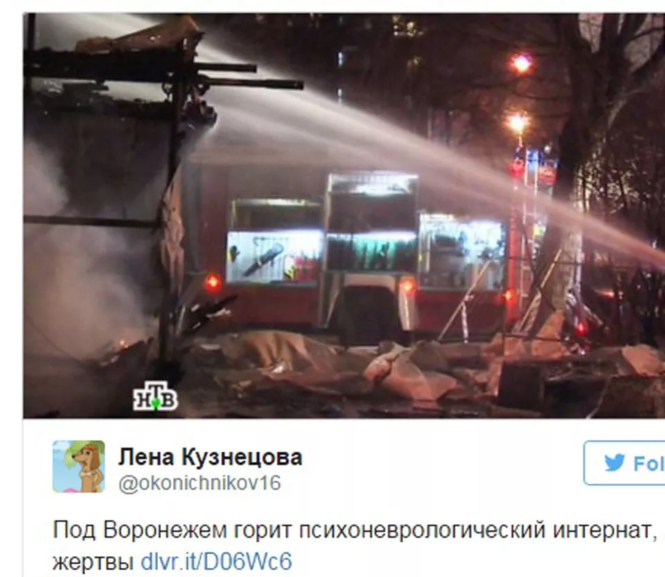 Požar je izbio u noći sa subote na nedelju u oblasti Voronez. U bolnici je bilo 70 pacijenata u najmanje 4 medicinara kada je unutar zgrade došlo do požara. Zgrada je uništena u potpunosti.