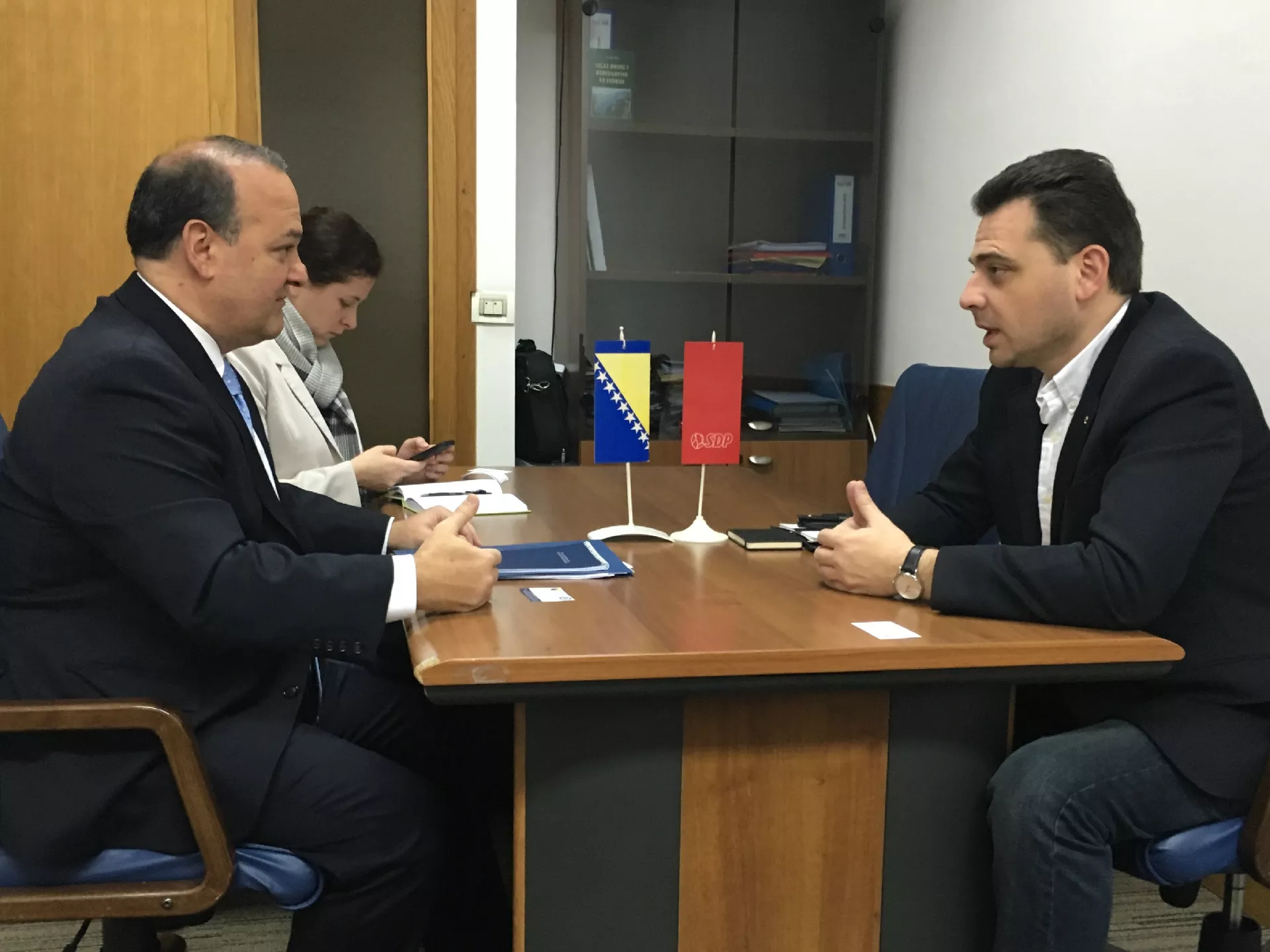 Predsjednik Glavnog odbora SDP BiH i poslanik u Parlamentu BiH Saša Magazinović sastao se sa direktorom ureda za južnu i centralnu Evropu u ministarstvu vanjskih poslova SAD Thomasom Yazdgerdijem, prenosi novinska agencija Patria.