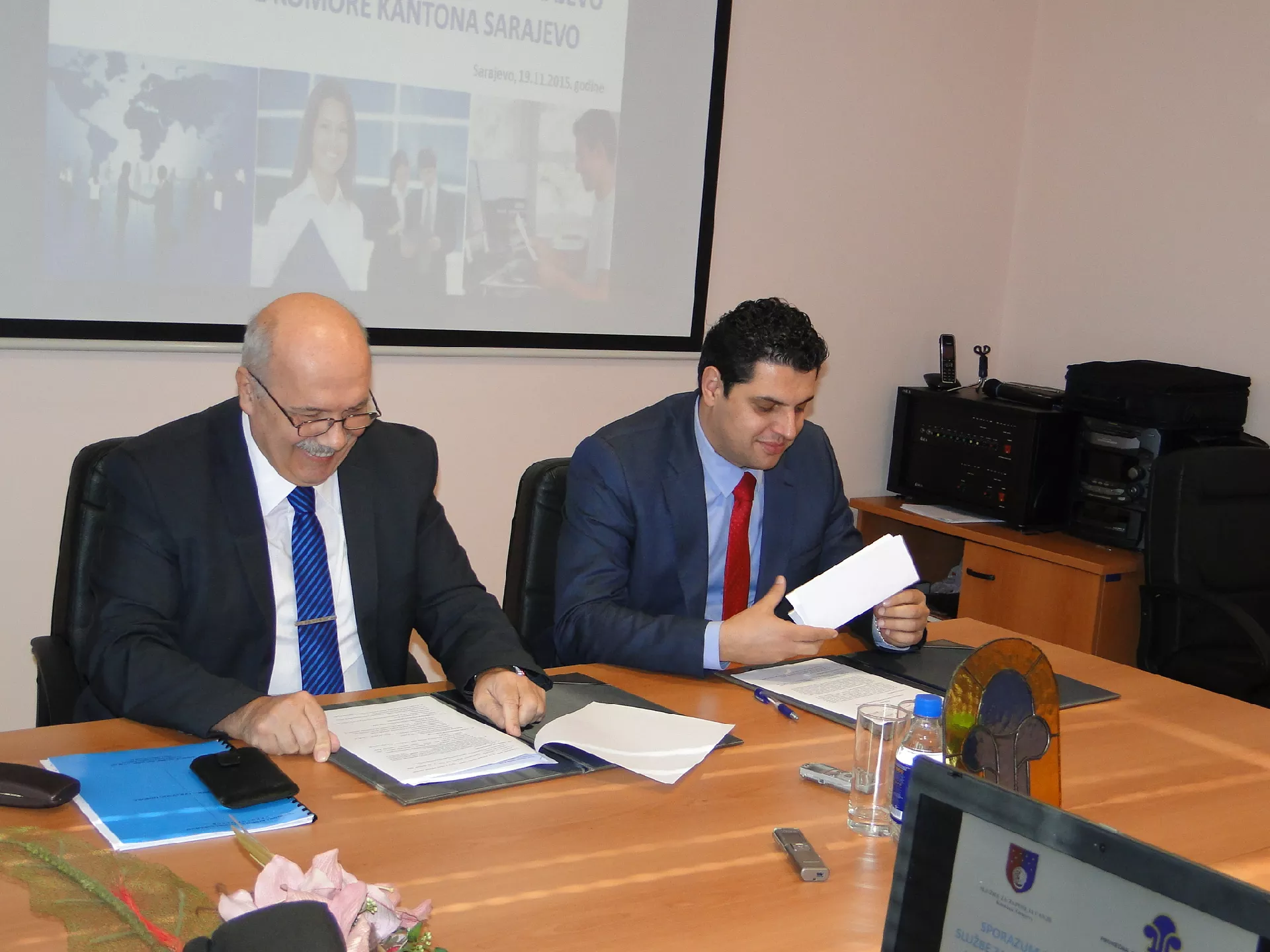 Predsjednik Privredne komore Kantona Sarajevo Kemal Grebo i direktor Službe za zapošljavanje Kantona Sarajevo, Igor Kamočaji danas su u prostorijama Privredne komore KS potpisali Sporazum o međusobnoj saradnji u pravcu zajedničkog djelovanja na izradi obrazovnih planova i realizaciji projekata, prenosi novinska agencija Patria.
