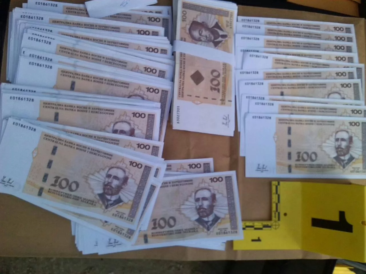 Policijski službenici Državne agencije za istrage i zaštitu (SIPA) danas su (17.11.2015. godine) na području Bosanske Krupe pretresli putničko motorno vozilo koje koristi osoba inicijala V.V. (1962) zbog postojanja osnova sumnje da je počinila krivično djelo iz člana 205. KZ BiH „Krivotvorenje novca“. Pretresom putničkog motornog vozila pronađeno je i privremeno oduzeto 20.500 KM u apoenima od 100 KM, za koje se sumnja da su krivotvorene, prenosi novinska agencija Patria, saopćeno je iz SIPA-e.