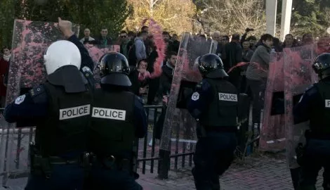 Poslije kratkotrajnog zatišja u Prištini je nastavljen sukob policije i demonstranata koji su na policiju bacili kamenje i crvenu farbu i obojili im štitove, a policija im je odgovorila suzavcem, javila je KosovaPress, prenosi novinska agencija Patria.