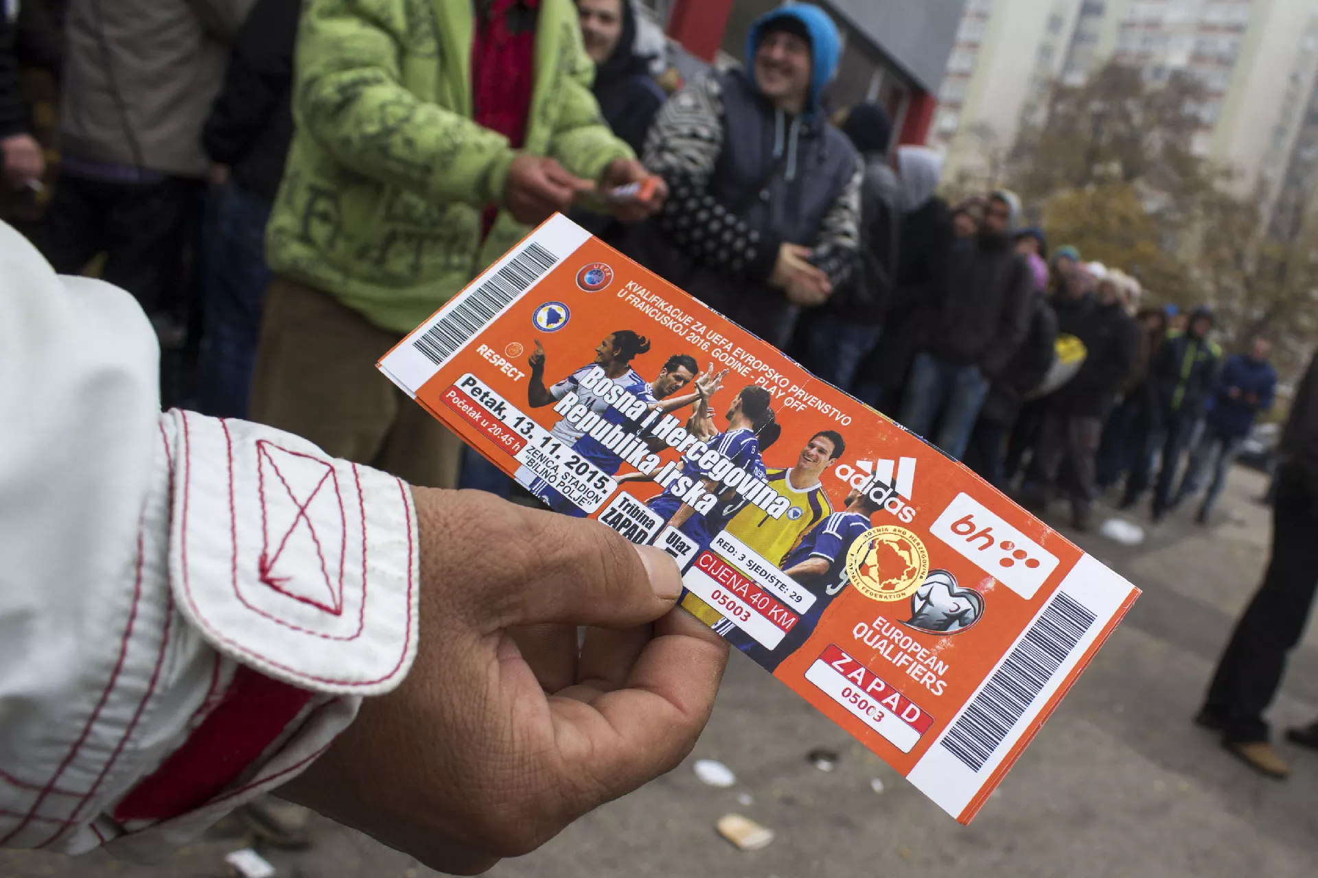 Jedini način da bh. navijači dođu do karata je kupovina od tzv. tapkaroša. Na internet servisu za kupovinu i prodaju olx.ba, ulaznica je sve manje, a cijene se kreću od 100 do 200 KM za zapad, te od 50 do 100 KM za jug, sjever i istok.