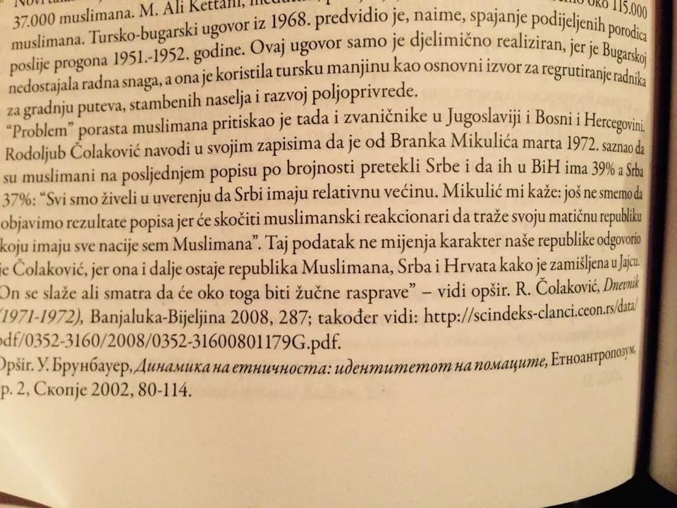 -“Problem” porasta populacije muslimana pritiskao je tada i zvaničnike u Jugoslaviji i BiH. Rodoljub Čolaković, navodi u svojim zapisima da je od Branka Mikulića marta 1972. godine saznao da su bosanski Muslimani na posljednjem popisu po broju pretekli Srbe i da ih u BiH ima 39 posto, a Srba 37 posto.