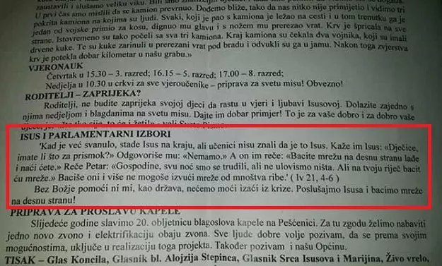 Ovo je samo jedan u nizu načina na koji se Crkva miješa u izbore i odabir građana. Prije nekoliko dana kardinal Josip Bozanić u pismu je pozvao građane da glasaju za HDZ.