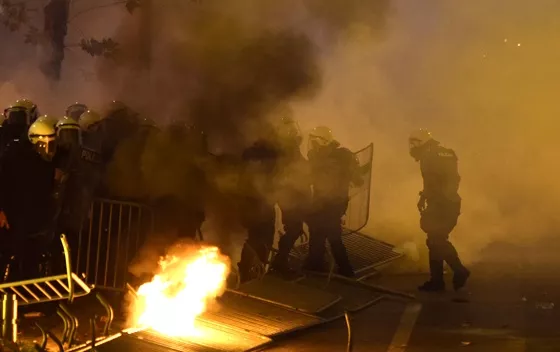 Grupa muškaraca sa maskama na licu zasula je policiju petardama, bakljama, kamenicama, zapaljenim flašama sa benzinom. Specijali su uzvratili suzavcem i šok bombama, nakon čega su i razbili demonstarcije. Više desetaka osoba je uhapšeno, a dio njih je završio u bolnici.