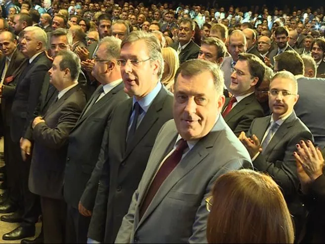 Skupu u Centru "Sava" prisustvuju, između ostalih, lider SNS-a Aleksandar Vučić, predsjednik Srbije Tomislav Nikolić, ministar vanjskih poslova Srbije Ivica Dačić, član Predsjedništva BiH Mladen Ivanić, predsjedavajući Doma naroda Parlamentarne skupštine BiH Ognjen Tadić, režiser Emir Kusturica....
