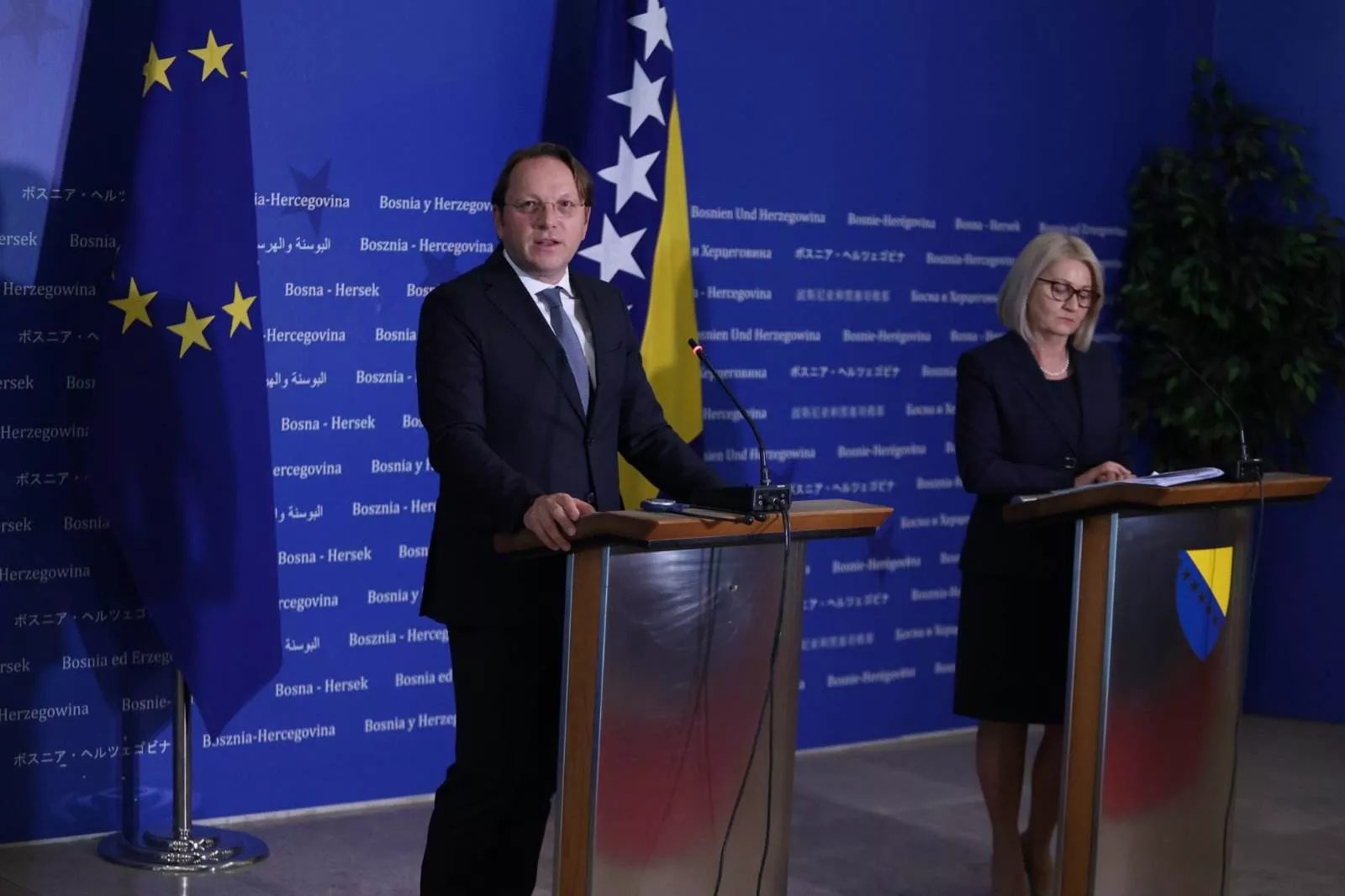 (Patria) - Predsjedavajuća Vijeća ministara BiH Borjana Krišto kazala je na današnjoj press konferenciji koju je održala sa evropskim komesarom Oliverom Varhelijem da je mehanizam koordinacije pravi signal kako BiH treba raditi osvrćući će se na današnji Politički forum na kojem su učestvovali predstavnici svih nivoa vlasti. Ona je istakla da je u pripremi dnevni red sjednice Mehanizma koordinacije.
