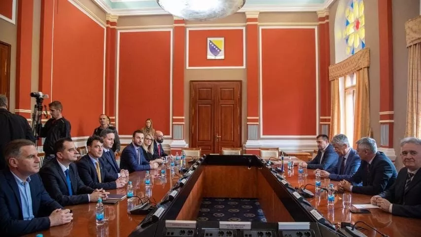 SARAJEVO, (Patria) - Član Predsjedništva BiH Denis Bećirović razgovarao je s gradonačelnikom Brčko distrikta BiH Zijadom Nišićem, predsjednikom Skupštine Brčko distrikta BiH Sinišom Milićem i potpredsjednikom Skupštine Brčko distrikta BiH Ivom Filipovićem.