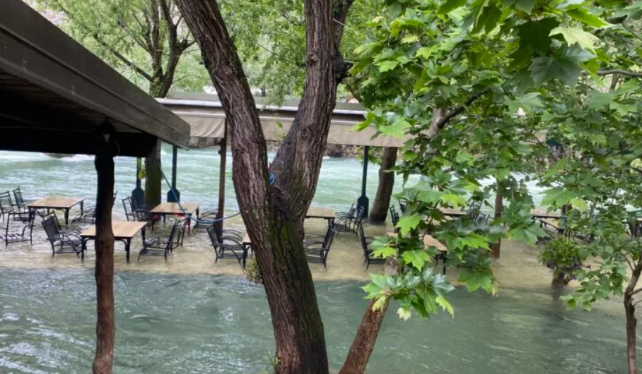 SARAJEVO, (Patria) - Obilne padavine uzrokovale su povećanje vodostaja rijeke Bune gdje su ugostiteljski objekti koji se nalaze uz blagajsku tekiju danas poplavili.
