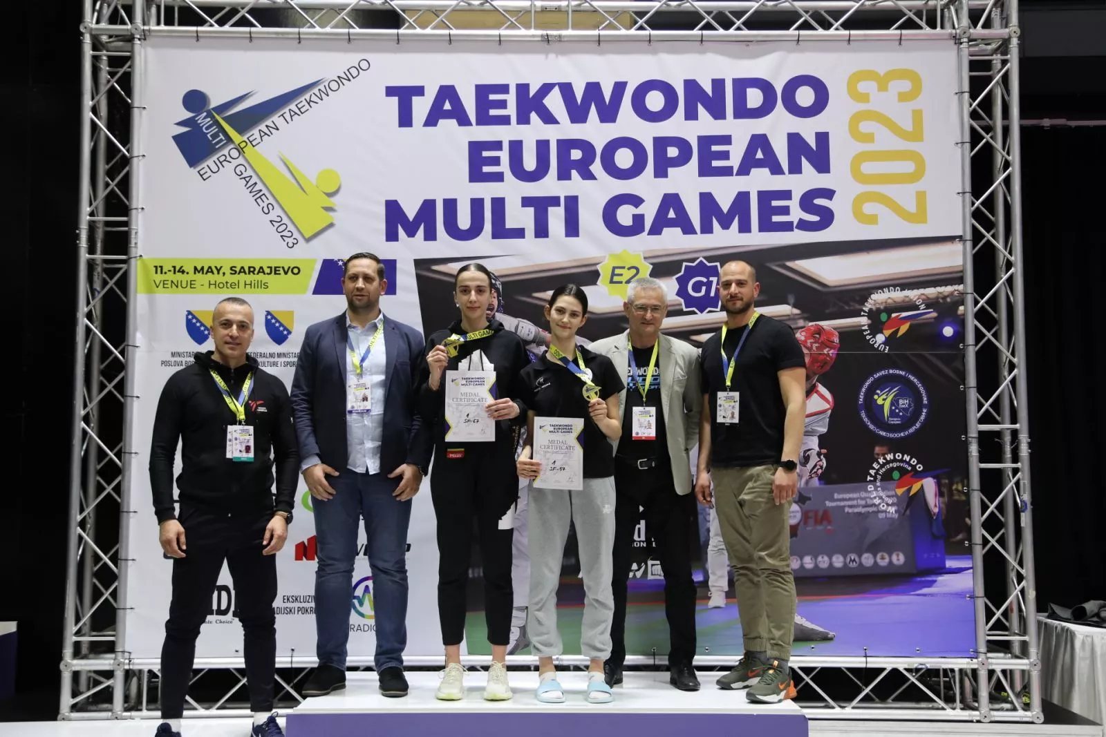 (Patria) - Nadina Mehmedović iz Taekwondo akademije Tešanj-Šije i Petra Ždero iz Taekwondo kluba Magone Livno osvojile su zlatne medalje u konkurenciji seniora trećeg dana takmičenja "Multi European Games" koje se održava u Sarajevu.