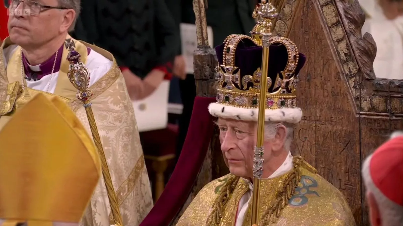 "Kralju kraljeva i gospodaru svih gospodara, blagoslovi ovu krunu i posveti slugu svoga Charlesa na čiju je glavu danas polažeš", rekao je nadbiskup uzimajući krunu koju je položio na kraljevu glavu.