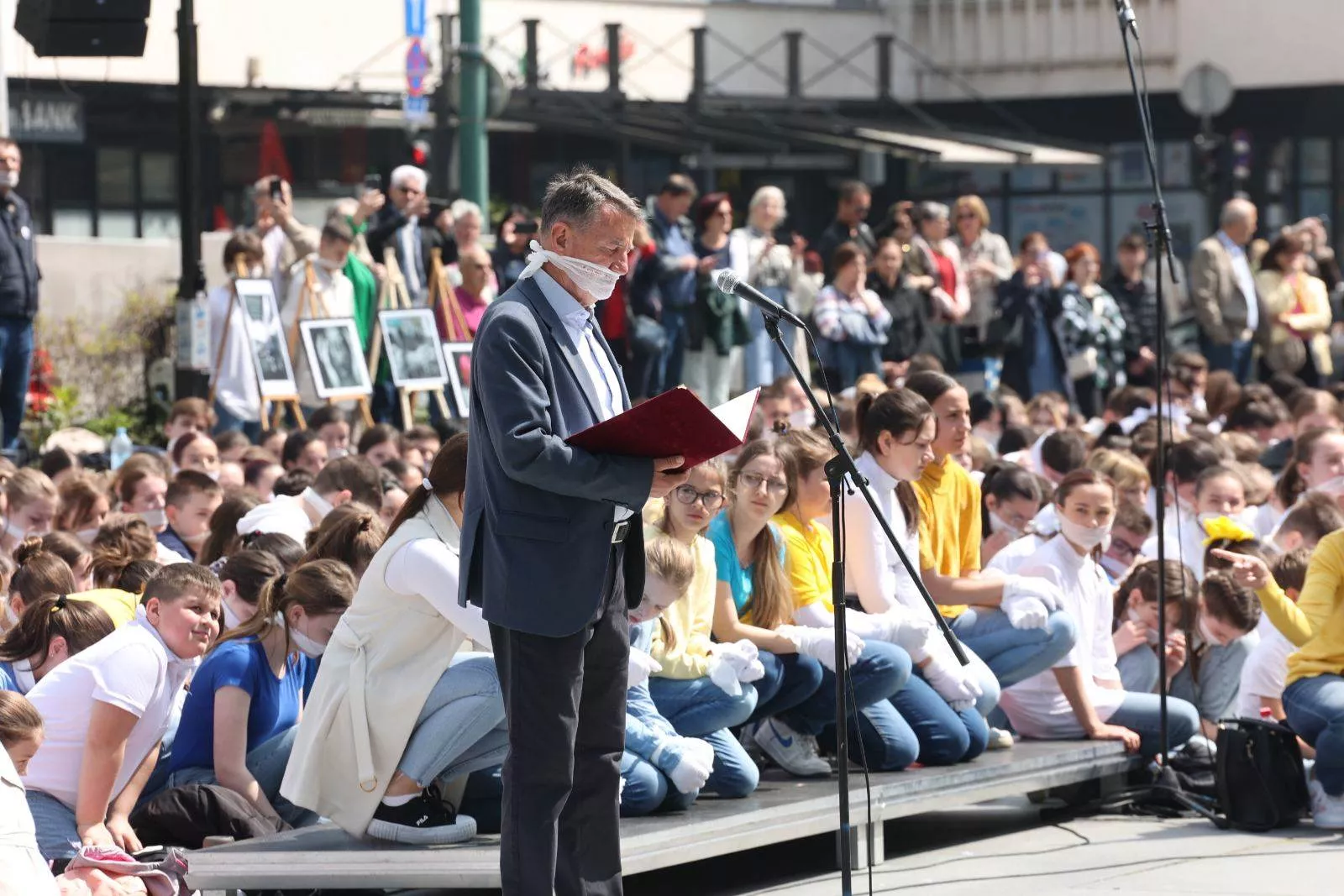 Predsjednik Udruženja roditelja ubijene djece opkoljenog Sarajeva Fikret Grabovica kazao je novinarima poručio da će danas povodom obilježavanja 5. maja, Dana sjećanja na ubijenu djecu Sarajeva, u horu nastupiti 1.601 dijete.