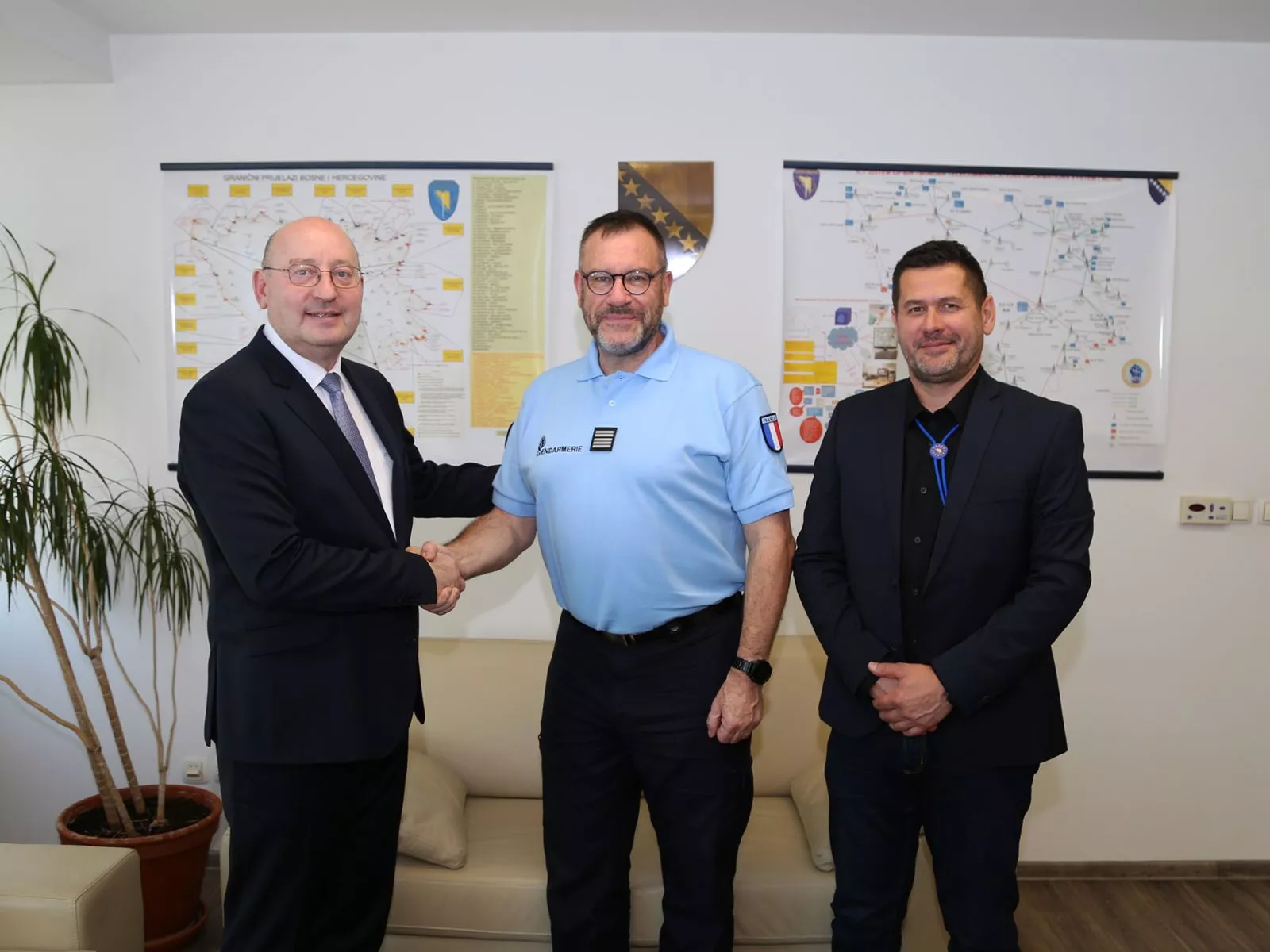 Direktor Kuprešaković je iskazao zadovoljstvo i dobrodošlicu pukovniku Floconu i časniku Perki u Graničnu policiju BiH i predstavio rezultate rada GPBiH u proteklom razdoblju. Tokom sastanka su razgovarali i o sigurnosnoj situaciji u Bosni i Hercegovini te nezakonitim migracijama, prilikom čega su razmijenili važne informacije i iskustva iz navedenog područja.