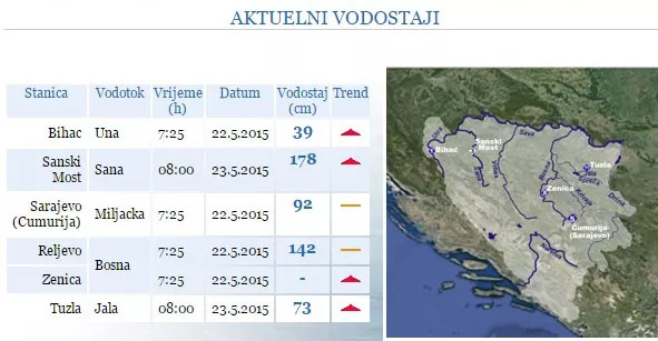 Očekivana količina padavina bit će od 30 do 60 litara po metru kvadratnom. S tim u vezi vidljivo je da je vodostaj rijeka u porastu. Najviši vodostaj dostigla je rijeka Sana od 178 centimetara.