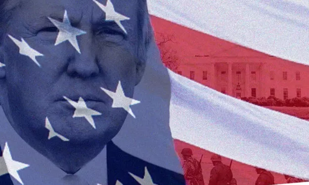 Predizborna poruka popraćena je i prigodnom fotografijom, motivom zastave SAD-a pod koju su namontirani Trumpovo lice, američki dolari, Bijela kuća i - vojnici. Ali ne američki. Bliža inspekcija fotografije otkriva da vojnici na uniformama nose oznake SS-a, odnosno da je Trump na svoju predizbornu fotografiju umontirao naciste.