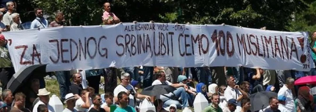 Natpis je bio potpisan imenom i prezimenom Aleksandar Vučić - Citat gdje je ispisana njegova izgovorena rečenica 20 juna 1995. godine. Ako se pogleda datum vidjet će se da je to izgovoreno motivacijski, onda kada su počela masovna ubistva i likvidacije Bošnjaka u Potočarima. Iz tog razloga, htjeli smo podsjetiti i Vučića i sve one koji su ga pozvali da dođe, na njegov motivacioni govor koji je tada odjeknuo u Potočarima, u danima kada su najveće pokolje pravili upravo pripadnici dobrovoljačkih jedinica iz Srbije, poručuje Aličković.