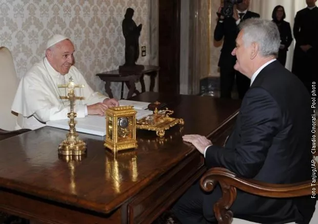 Predsjednik Srbije Tomislav Nikolić razgovarao je danas u Vatikanu sa papom Franjom, prenosi novinska agencija Patria.