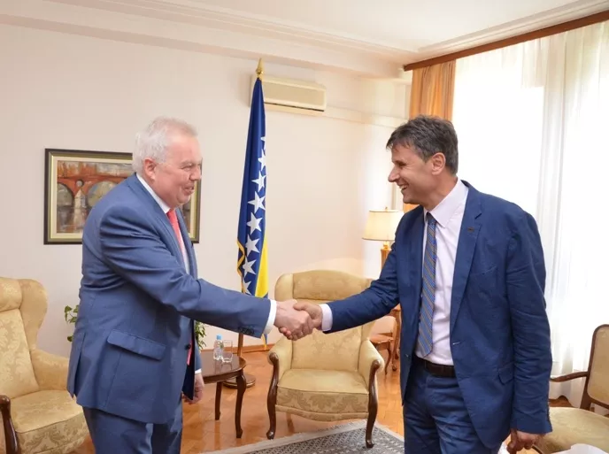Tokom sastanka, održanog u sjedištu Federalne vlade u Sarajevu, razgovarano je i o aktuelnoj političkoj situaciji u zemlji, saopćeno je iz Ureda premijera.