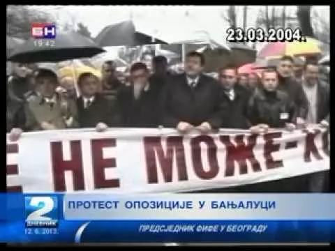 Miting, pod geslom “Dalje ne može-hoćemo promjene”, predvodio je upravo Dodik, tadašnji lider opozicije.